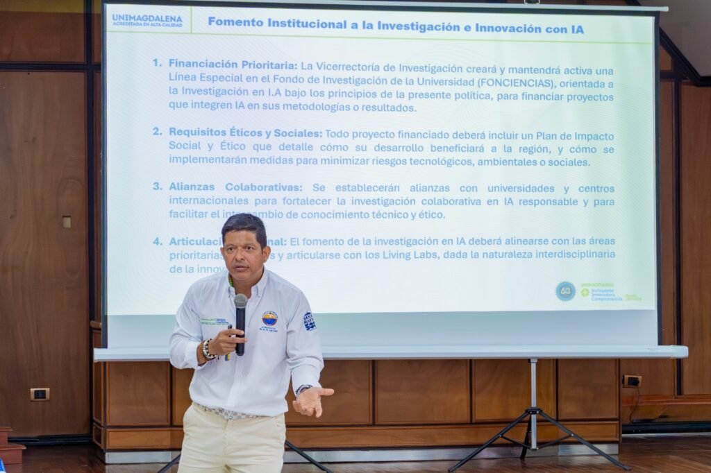 Además, indicó que, de cara al nuevo año académico, la Universidad del Magdalena desarrollará un intenso trabajo en facultades y programas, incorporando esta política en el rediseño de los cursos de introducción a la carrera en toda la institución, con el propósito de que los estudiantes comprendan no sólo el uso responsable de la inteligencia artificial, sino también el sentido profundo de su formación universitaria.
